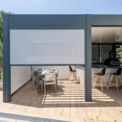 Personnalisez votre pergola avec les stores à cassette, motorisés ils se pilotent à distance. Plus de 50 coloris disponibles.