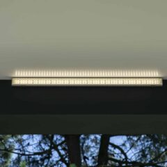 Alimentés par la centrale et avec un variateur sur la télécommande. Les rampes sont inclinées vers le centre de la pergola. Pas de fixation, ni fils visibles. Tous les branchements sont réalisés par prises étanches.